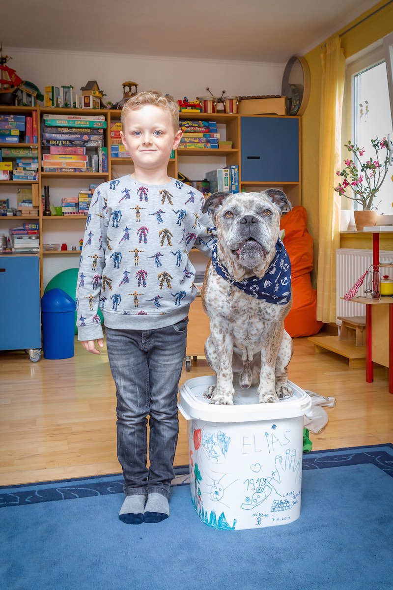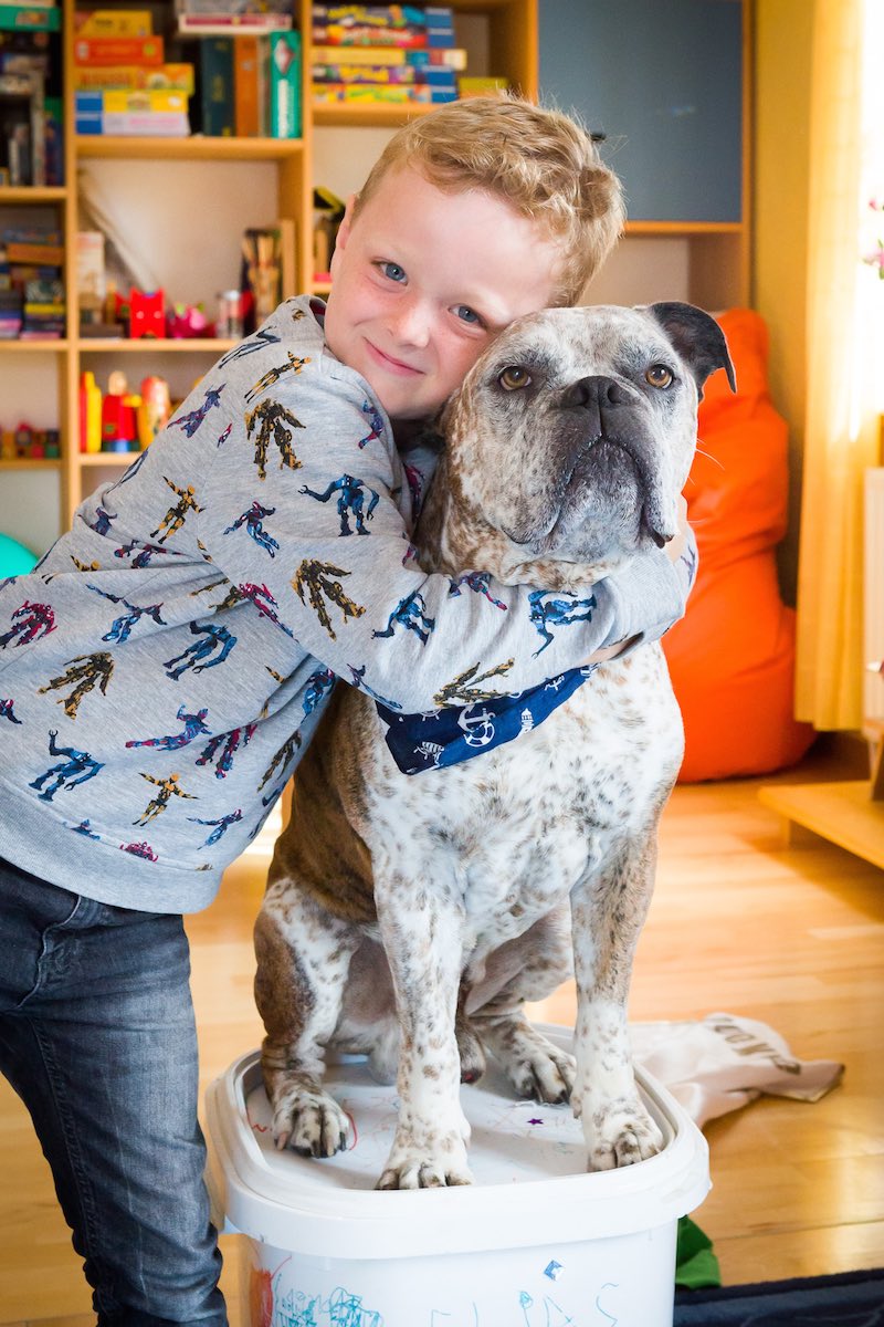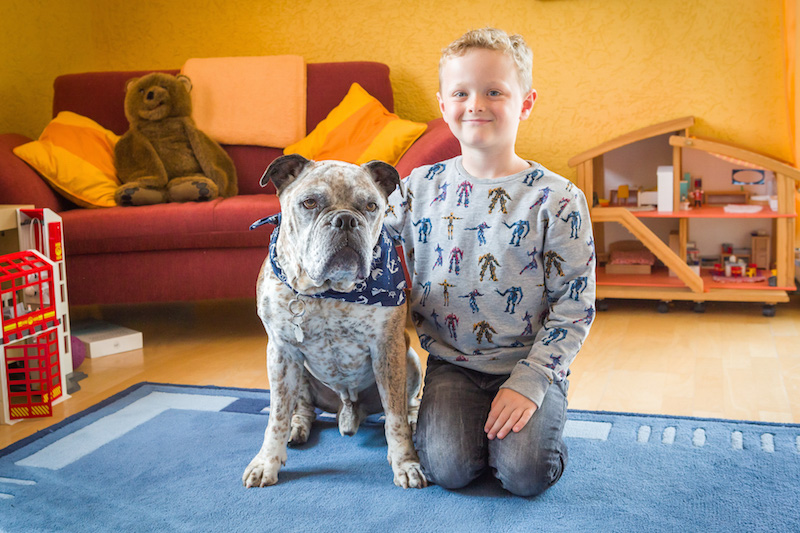 Bolle ist ein achtjähriger Old English Bulldog, der seit Welpenalter bei seiner Besitzerin Stefanie Huber lebt und von ihr ausgebildet wurde. Bolle hat die Fähigkeit jedem Menschen, ob jung oder alt, ein Lächeln auf`s Gesicht zu zaubern!
