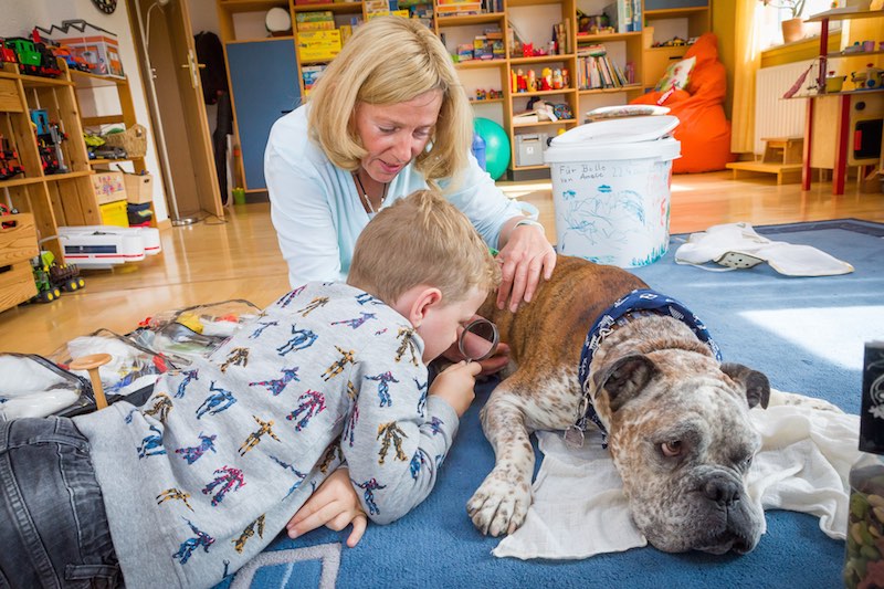 Die hundgestütze Therapie hilft bei Kindern mit AD(H)S, Hemmungen, Ängsten, Behinderungen, Traumata u.a..Der Erfolg der hundgestützten Therapie basiert auf dem Gedanken, dass Hunde frei von Werturteilen sind und großartige Zuhörer abgeben, und dass sie uns bedingungslose, „schwanzwedelnde Liebe“ schenken.